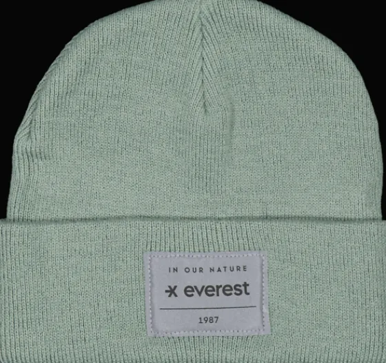 Stickad mössa i akryl. Ett uppvik nedtill gör den dubbelt så tjock över öronen för ökad värme. Den är dessutom försedd med ett reflekterande Everest-märke framtill.
