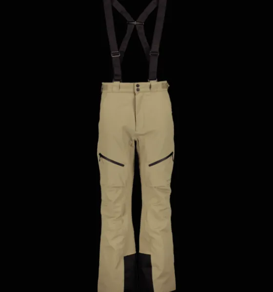 Vadderade skidbyxor med vattentätt yttertyg som även ger effektiv andasfunktion. Alla sömmar på byxorna är tejpade för att ge ett så bra skydd som möjligt mot regn och snö. De har insida med fleece baktill och material med låg friktion framtill för att ge bra värme och för att vara smidiga att komma i och ur. Snölås i bensluten håller snö och kyla ute. Bensluten är dessutom förstärkta på insidan för att bättre stå emot slitage från skidornas vassa stålkanter. Byxorna har också avtagbara hängslen, elastiskt justerbart band i midjan och hällor för bälte. Plagget är fritt från miljöfarliga fluorkarboner och har yttertyg och vaddering i återvunnet material.
