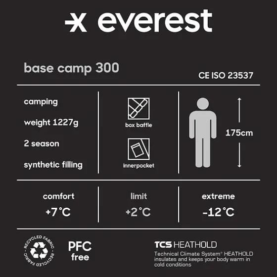 Tvåsäsongssovsäck som passar bra för exempelvis camping och vandring. Den har en värmande syntetfyllning, Spinloft Cloud, som består av 100% återvunnen polyester. Fyllningens kanaler har bafflar för att minska risken för köldbryggor och för att säkra optimal isolering. Sovsäckens tvåvägs dragkedja från SBS går att öppna och stänga både från insidan och utsidan. Dragkedjan gör det också möjligt att bara öppna upp sovsäcken nere vid fötterna, perfekt om du blir varm. Huvan på sovsäcken är justerbar och det finns även en köldkrage för att behålla värmen inuti sovsäcken. På insidan vid bröstet finns en praktisk förvaringsficka med dragkedja, perfekt för mobilen eller andra värdesaker. Sovsäcken är temperaturtestad enligt ISO 23537. Levereras med en kompressionspåse. Tänk på att förvara sovsäcken luftigt när den inte används.