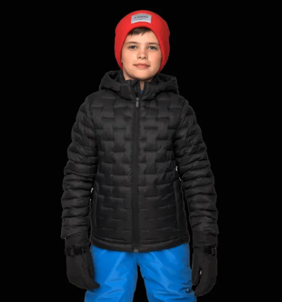 Lätt vadderad linerjacka för barn, med rak passform och med lätt vattenavvisande yttertyg. Den har två sidofickor med dragkedja, och avtagbar huva för barnets säkerhet. Jackan passar bra att använda för sig i lite varmare väder eller som ett värmande lager under en regnjacka eller skaljacka i kallare temperaturer. Vadderingen är gjord i 100% återvunnen polyester och ytbehandlingen är fri från miljöfarliga fluorkarboner.