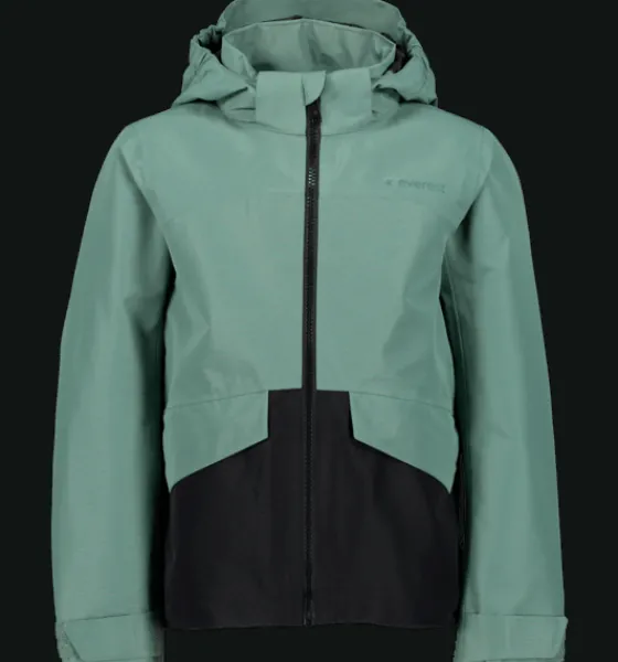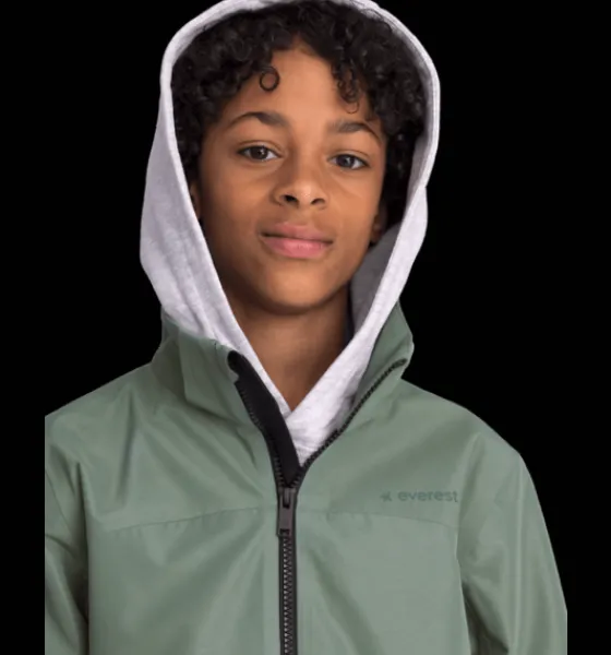 Allround Jacket från Everest är en vind- och vattentät vår- och höstjacka för junior. Den passar bra att använda både som en regnjacka och som en funktionsjacka. Jackan har vind- och vattentätt yttertyg, heltejpade vattentäta sömmar och mycket bra andasfunktion. Den har också ett mjukt innerfoder men är ovadderad. Huvan är avtagbar och justerbar och på insidan av kragen finns ett mjukt foder för en varmare känsla. Jackan är även försedd med en reflekterande detalj nertill på ryggen och med en skyddande vindslå innanför dragkedjan fram för att hindra vind och kyla att tränga igenom. Jackans vattenavvisande ytbehandling är fri från PFAS och innerfodret är färgat med energibesparande Solution Dye-teknik.