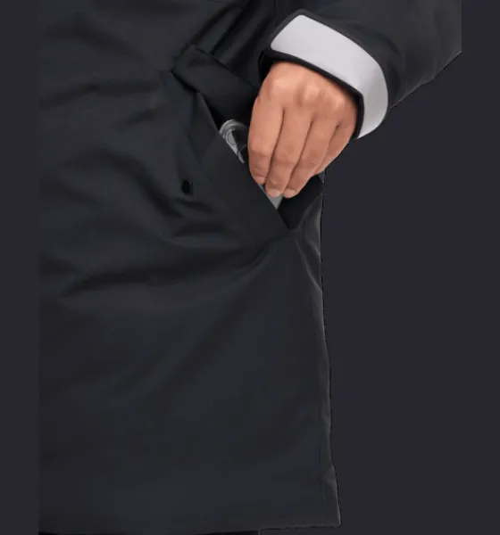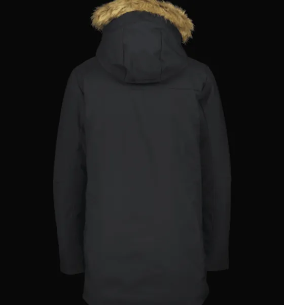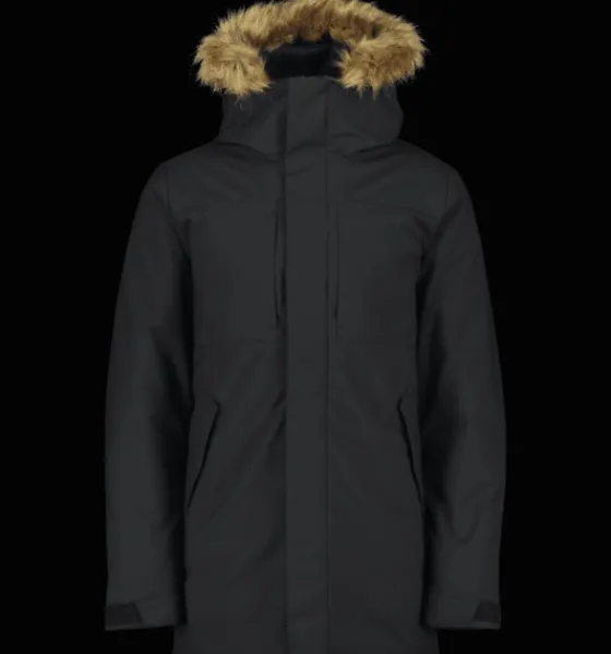 Parka med vind- och vattenavvisande yttertyg och värmande dunfyllning av 70% dun och 30% fjäder. Nedersta delen av jackan samt ärmarna och huvan har dunliknande syntetfyllning. Jackan har dubbla huvor, där den inre är gjord i reflekterande material. Du kan ha den på dig eller bara fälla ut den vid behov. Den yttre huvan har en syntetpäls som du kan ta av för att variera utseendet på jackan. Ärmsluten är justerbara för bästa passform, och har en elastisk innermudd med tumhål som sluter tätt och håller vind och kyla ute. I ärmsluten finns också en reflekterande kant som du kan fälla ut när det behövs. Jackan har tvåvägs dragkedja fram med en dubbel skyddande vindslå. Den har dessutom flera praktiska fickor, bland annat en dold ficka mellan främre vindslån och dragkedjan, som fungerar lite som en innerficka utan att du behöver öppna upp jackan. Jackan är 3-i-1 kompatibel. Ett fäste bak i nacken gör att du kan koppla ihop en tunnare lättviktsjacka med den här jackan. På så sätt kan du skapa kombinationer av plagg som du kan använda under en längre del av säsongen. Plagget är fritt från miljöfarliga fluorkarboner.