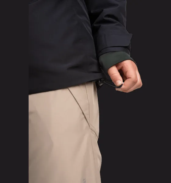 Varmfodrad juniorjacka med vind- och vattentätt yttertyg som har mycket bra andasförmåga. Den har värmande polyestervaddering, mjukt innerfoder och heltejpade sömmar för en helt vattentät konstruktion. Jackans huva är avtagbar för barnet säkerhet och på insidan av kragen finns ett mjukt foder för en varmare, skönare känsla. Jackan är också försedd med reflekterande detaljer, sidofickor med ficklock och med en skyddande vindslå bakom dragkedjan framtill för att hindra vind och kyla att tränga igenom. Den är justerbar i både ärmslut och nederkant för en personlig passform och för att hålla snö och kyla ute.