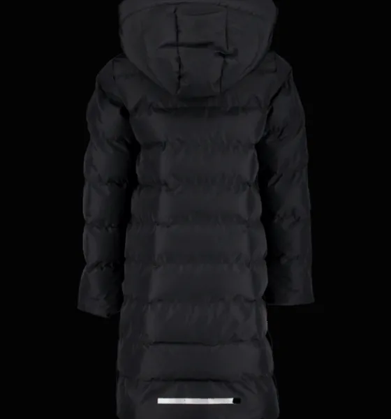 J Grando Coat från Everest är en varmfodrad höst- och vinterkappa för junior. Den är gjord i en längre modell för skön värme och har en nättare, lätt formad passform. Jackan har värmande vaddering av återvunnet material och vattentätt yttertyg (10 000 mm), men har inte tejpade sömmar så se upp med för hård, långvarig nederbörd. Den är försedd med en avtagbar huva för ökad säkerhet och har sprund med tryckknappar nertill i sidorna, perfekt att öppna upp så att du kan röra dig lättare. Jackan har också framfickor med dragkedja och mjukt innerfoder samt ett reflekterande tryck nertill på ryggen. På insidan av ärmsluten finns dessutom en kant i reflekterande material, smidig av vika fram vid behov. Plaggets vattenavvisande ytbehandling är fri från PFAS.