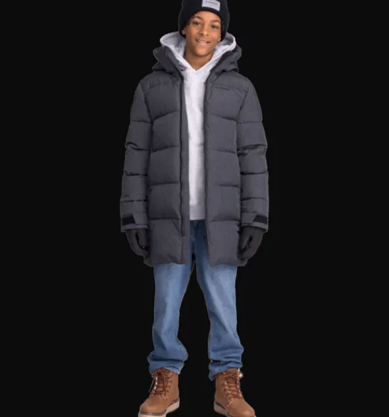 Wedge Parka från Everest är en varmfodrad juniorjacka gjord i en längre modell för skön värme över en större del av kroppen. Den passar bra som en höst- och vinterjacka och har vind- och vattenavvisande yttertyg och vaddering av återvunnet material. Jackans axelparti är gjort i ett material som ger ett reflekterande rutmönster. Den har även en reflekterande detalj nertill på ryggen. Huvan är avtagbar för ökad säkerhet och kragen har mjukt borstad trikå på insidan för en varmare känsla. Jackans ärmslut kan justeras med kardborre för en omslutande passform och har dessutom en elastisk innermudd som hjälper till att hålla regn, snö och kalla vindar ute. Jackans vattenavvisande ytbehandling är fri från PFAS och innerfodret är färgat med energibesparande Solution Dye-teknik.
