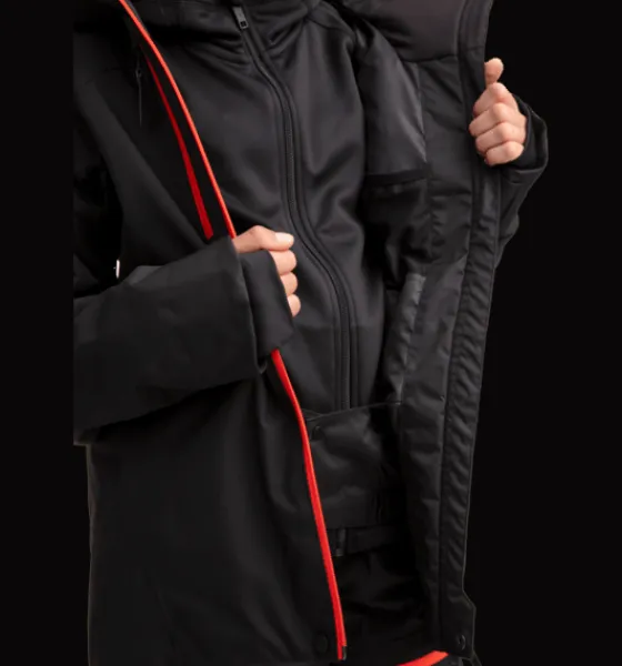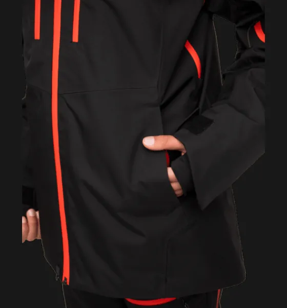 - Vattentät dragkedja framtill och på bröstfickorna och liftkortsfickan