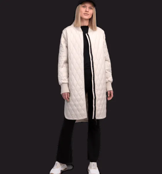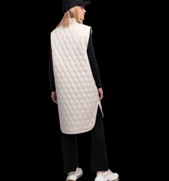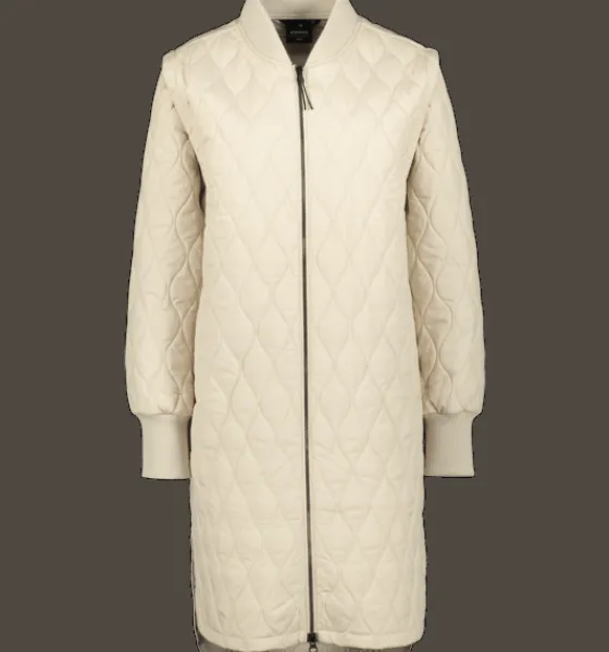 Lång, lätt vadderad kappa/vårjacka tillverkad helt i återvunnen polyester. Ärmarna kan tas bort med hjälp av en dragkedja, på så sätt blir det också en lång väst i samma plagg. Funktionen med avtagbara ärmar och den lätta vadderingen gör att jackan passar lika bra på våren som på hösten – ett perfekt plagg för större delen av året. Kappan har en lägre, ribbstickad krage och tvåvägs dragkedja fram. Den har också muddar i ärmsluten som håller vind och kyla ute, två framfickor som stängs med dragkedja samt sprund nertill i sidorna så att du kan röra dig lätt. Kappan är 3-i-1 kompatibel. En ögla bak i nacken gör att du kan koppla ihop din tunnare lättviktskappa, som ett värmande lager, under en annan jacka för att få ett riktigt varmt ytterplagg eller en fodrad regnkappa. På så sätt kan du skapa kombinationer av plagg som du kan använda under en längre del av säsongen. Plaggets vattenavvisande ytbehandling är fri från miljöfarliga fluorkarboner.