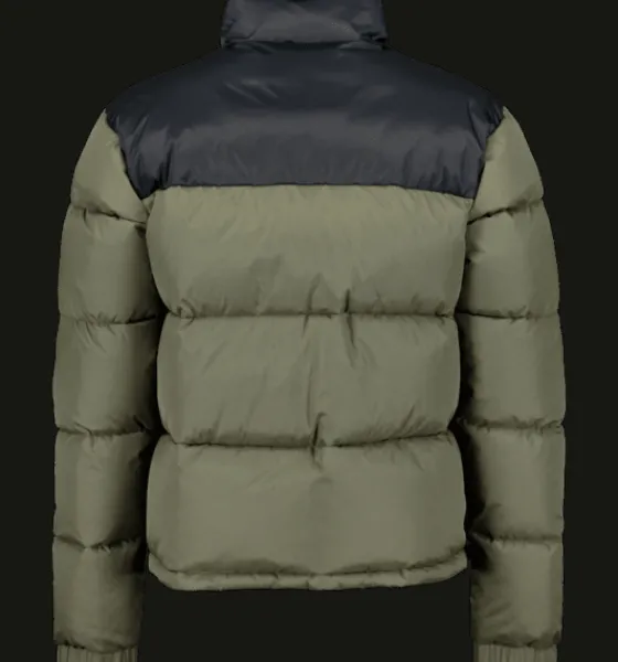 Kanalsydd jacka med puffig, värmande vaddering av återvunnet material. Passar bra att använda både som en höstjacka och som en vinterjacka. Jackans yttertyg är av ripstop-material, vilket gör den extra slitstark. Den har två ytterfickor med dragkedja och med mjukt innerfoder som ger en varm och skön känsla om du behöver värma händerna. Inuti fickorna finns dessutom ett fastsytt band med reflekterande tryck, smidigt att fälla ut vid behov. Jackan är 3-i-1 kompatibel. Ett fäste bak i nacken gör att du kan koppla ihop en tunnare lättviktsjacka med den här jackan. På så sätt kan du skapa kombinationer av plagg som du kan använda under en längre del av säsongen. Plaggets vattenavvisande ytbehandling är fri från PFAS.