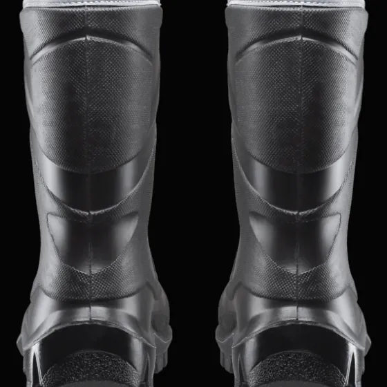 Vattentäta allvädersstövlar i PU-material. Stövlarnas värmande egenskaper är testat i labb och de håller värmen ner till -15°C. Materialet innerhåller luftbubblor vilket isolerar bättre. Dessutom har stövlarna både innerfoder och innersula i ullblandning som värmer även om fodret blir fuktigt. De är förstärkta vid tå och vrist för att ge bättre stöd för fötterna och har reflexband högst upp på skaftet för bättre synlighet i mörker. Yttersulan är slitstark och grovt mönstrad för att ge riktigt bra grepp.