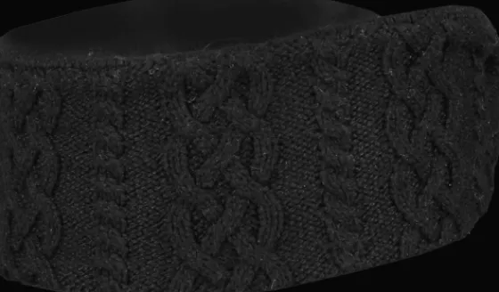 Kabelstickat pannband med dekorativt knyt. Tillverkat med återvunnen polyester.
