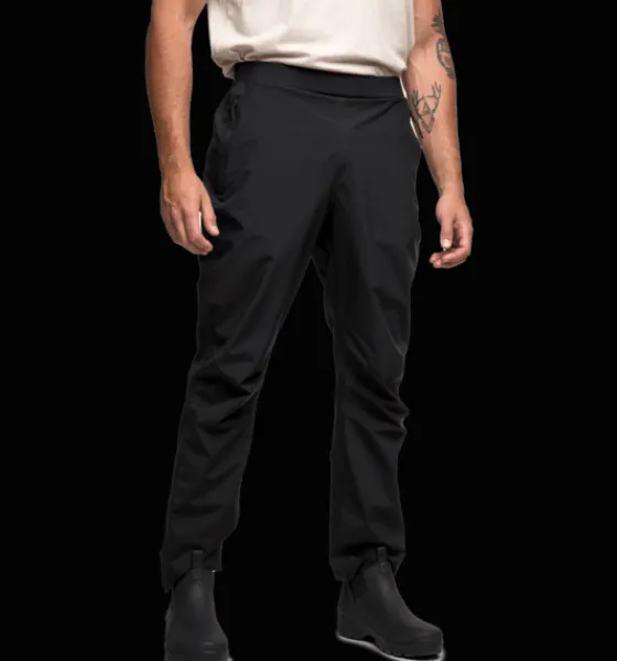 Regnbyxor med TCS Water som gör dem vind- och vattentäta upp till 10 000 mm. Byxorna har bra andasfunktion och är justerbara i midjan och i bensluten. De är också försedda med två framfickor med dragkedja.