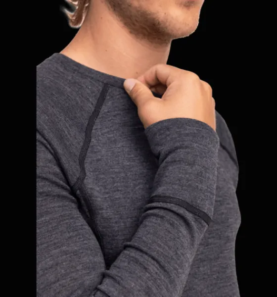 Värmande, snabbtorkande underställströja med bra fukttransport och andasfunktion. Tröjan är gjord i en ullblandning med mjuk merinoull (i 19,5 μm) för att inte klia. Merinoull är ett naturmaterial med en unik förmåga att rena sig själv och därför på naturlig väg förhindra dålig lukt i plagget.