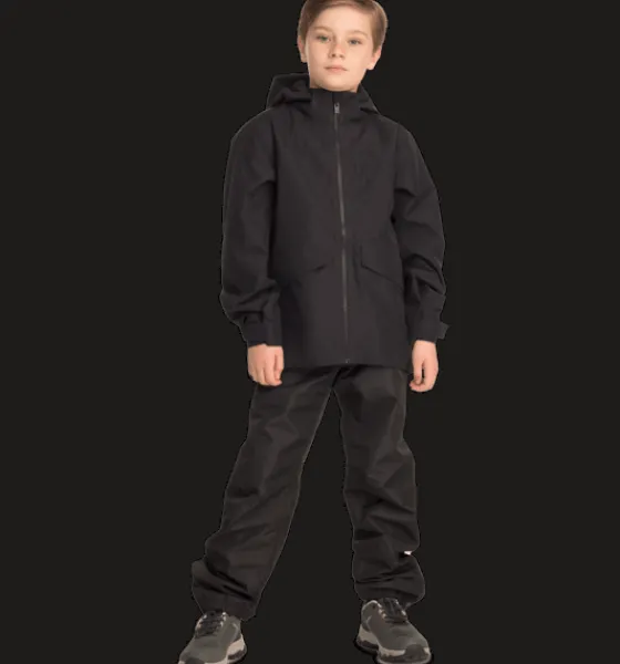 Allround Jacket från Everest är en vind- och vattentät vår- och höstjacka för junior. Den passar bra att använda både som en regnjacka och som en funktionsjacka. Jackan har vind- och vattentätt yttertyg, heltejpade vattentäta sömmar och mycket bra andasfunktion. Den har också ett mjukt innerfoder men är ovadderad. Huvan är avtagbar och justerbar och på insidan av kragen finns ett mjukt foder för en varmare känsla. Jackan är även försedd med en reflekterande detalj nertill på ryggen och med en skyddande vindslå innanför dragkedjan fram för att hindra vind och kyla att tränga igenom. Jackans vattenavvisande ytbehandling är fri från PFAS och innerfodret är färgat med energibesparande Solution Dye-teknik.