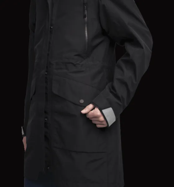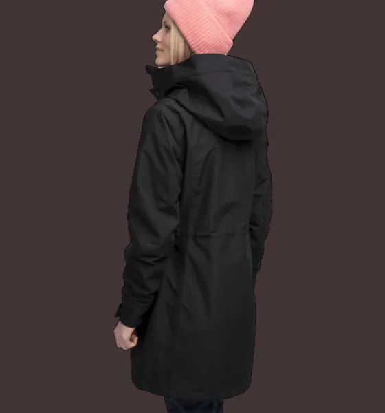 Vårjacka med vind- och vattentätt yttertyg. Den har tejpade vattentäta sömmar, flera praktiska fickor och tvåvägs dragkedja fram med vindslå både framför och bakom för att hindra vind och kyla att tränga igenom. Jackan är dessutom justerbar i huva, midja och ärmslut för en personlig och bekväm passform. Jackan är 3-i-1 kompatibel. Ett fäste bak i nacken gör att du kan koppla ihop en tunnare lättviktsjacka med den här jackan. På så sätt kan du skapa kombinationer av plagg som du kan använda under en längre del av säsongen. Plaggets ytbehandling är fri från miljöfarliga fluorkarboner och innerfodret är färgat med energibesparande Solution Dye-teknik.