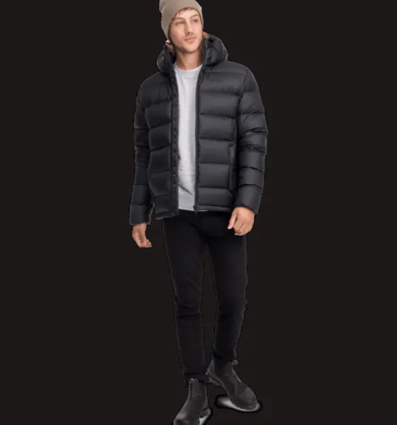 Dunjacka med värmande 90/10-dunfyllning. Försedd med justerbar huva, elastisk innermudd med tumhål i ärmsluten samt dragkedja fram med skyddande vindslå innanför för att hindra vind och kyla att tränga igenom. Den har dessutom dragsko i nederkant, två innerfickor, samt stora generösa ytterfickor med dragkedja och med mjuk borstad trikå på insidan för en varmare känsla. Plagget är fritt från miljöfarliga fluorkarboner.