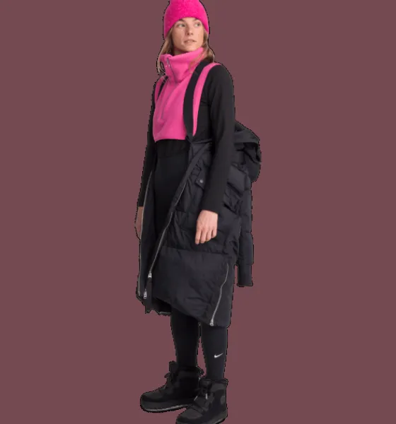 Lång kanalsydd kappa med värmande, dunliknande syntetvaddering av återvunnet material. Den har tvåvägs dragkedja fram och på insidan finns en elastisk bärrem som gör att jackan kan hängas på ryggen som en ryggsäck. Perfekt när det blir för varmt att ha den på sig, om du till exempel är på stan och växlar mellan att vara inne och ute. Bärremmen är avtagbar och kan kopplas bort. Jackan har också sprund nertill i sidorna som kan öppnas upp med dragkedja. Smidigt om du vill öka vidden på jackan så att du kan röra dig lättare om du är ute på en snabb promenad eller kliver i och ur bilen. Inuti sprundet sitter en kil i reflekterande material. Jackan har dessutom praktiska framfickor som har öppningar både i sidorna och upptill. Innanför ficklocket sitter en fastsydd reflekterande detalj som du enkelt kan fälla ut vid behov. Fickorna har också ett mjukt innerfoder i borstad trikå, för en varm och skön känsla när du värmer händerna. Jackan är 3-i-1 kompatibel. Ett fäste bak i nacken gör att du kan koppla ihop en tunnare lättviktsjacka med den här höst- och vinterjackan. På så sätt kan du skapa kombinationer av plagg som du kan använda under en längre del av säsongen.