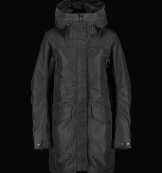Vind- och vattentät parka i något längre modell. Med lätt vaddering i återvunnen polyester, dragsko i midjan och huva med justering både fram och bak för en passform som sluter tätt och stänger ute vind och vatten. Jackan har ett mjukt foder framtill på insidan av kragen som värmer lite extra och ger en mjuk och skön känsla. Den har en skyddande vindslå framför dragkedjan fram, som stängs med tryckknappar och som hindrar vind och kyla att komma in. Även innanför dragkedjan finns en vindslå, som håller vind och kyla ute och som skyddar plaggen under från att fastna i dragkedjan. Ärmsluten är justerbara med knappstängning och har även en praktisk utfällbar detalj i reflekterande material. Jackan har dessutom flera fickor — två bröstfickor med dragkedja, en innerficka i mesh samt två midjefickor med ficklock och mjukt innerfoder. Jackan är 3-i-1 kompatibel. Ett fäste bak i nacken gör att du kan koppla ihop en tunnare lättviktsjacka med den här jackan. På så sätt kan du skapa kombinationer av plagg som du kan använda under en längre del av säsongen. Plagget är fritt från miljöfarliga fluorkarboner och har innerfoder färgat med energibesparande Solution Dye-teknik.