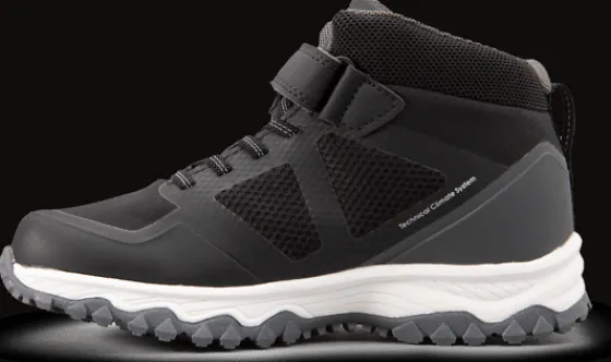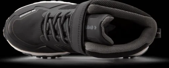 Vattentäta vandringsskor/sneakers i mid-modell. Skorna har en ovandel i PU och polyester som även har ett vattentätt membran för att hålla fötterna torra och bekväma. Kardborrerem tillsammans med elastiska skosnören gör skorna lätta att ta på och av. De är också försedda med en löstagbar, stötdämpande innersula för bekväma steg och med en slittålig mellan- och yttersula i TPR.